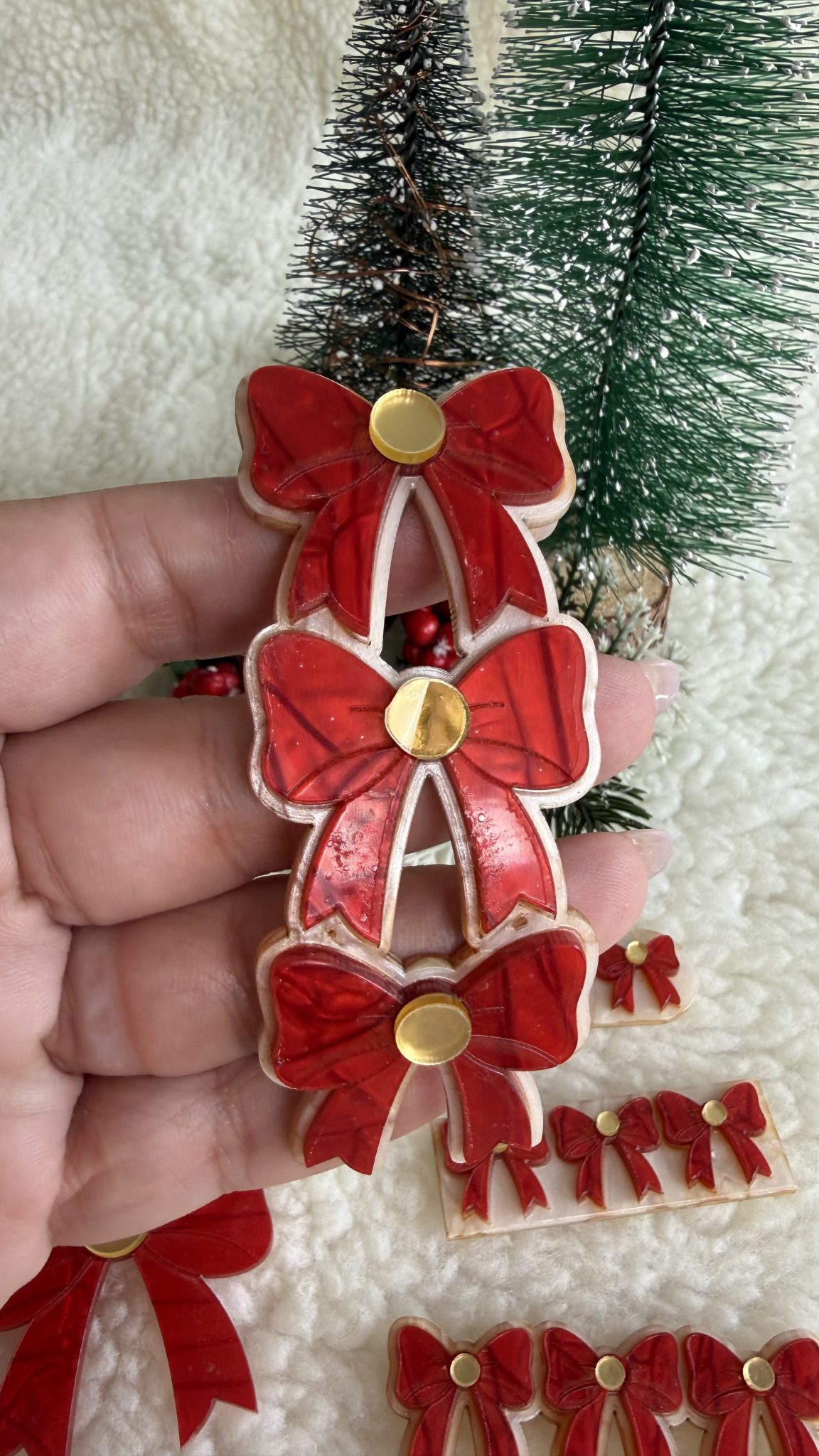 Transforme seus laços e acessórios com o encanto e a magia da Coleção Natal 2025! Produzidos em acrílico de alta qualidade e com acabamento impecável, esses apliques unem o vermelho, o dourado e detalhes delicados que remetem à beleza e ao brilho do Natal. Cada peça foi criada com design autoral, transmitindo emoção, ternura e aquele toque festivo que encanta em cada criação. 💫 Tamanhos disponíveis: 3cm, 4cm, 5cm e 7cm (Obs: Os tamanhos de 3cm, 4cm e 5cm não são indicados para curvar, pois podem danificar o aplique.) 🎀 Atenção! A opção CURVADA é indicada exclusivamente para uso em tiaras nos tamanhos a partir de 5 cm. Colas recomendadas para melhor fixação:- Loctite (Super Bonder Mega ou Ultra)